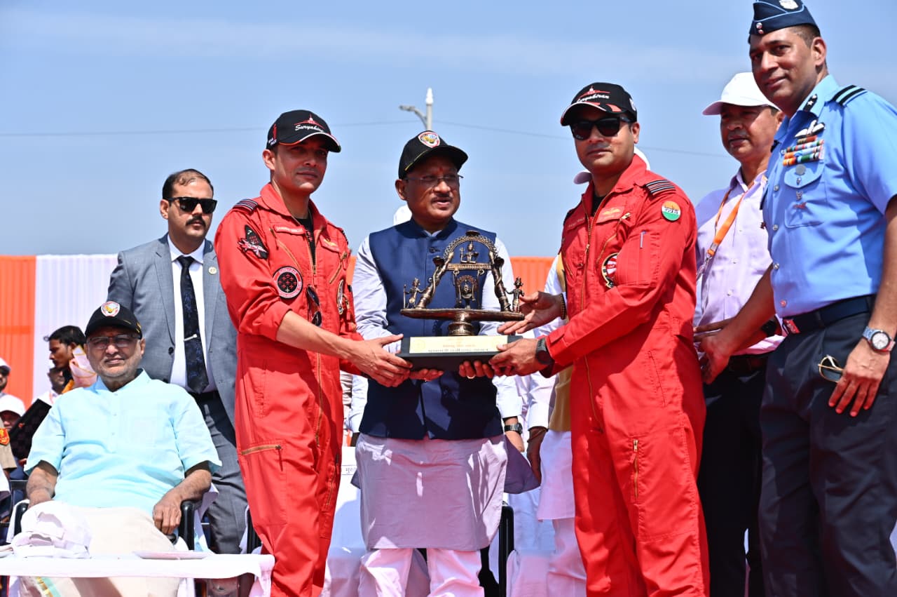 उप मुख्यमंत्री विजय शर्मा, कृषि मंत्री रामविचार नेताम, वन एवं जलवायु परिवर्तन मंत्री केदार कश्यप, खाद्य मंत्री दयाल दास बघेल, स्वास्थ्य मंत्री श्याम बिहारी जायसवाल, राजस्व मंत्री टंकराम वर्मा, वित्त मंत्री ओ.पी. चौधरी, महिला एवं बाल विकास मंत्री लक्ष्मी राजवाड़े, कौशल विकास मंत्री गुरू खुशवंत साहेब और सांसद बृजमोहन अग्रवाल सहित विभिन्न निगमों, मंडलों और आयोगों के पदाधिकारी भी एयर शो देखने पहुंचे थे।