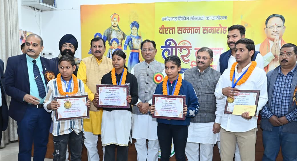 रायपुर: Veer Bal Diwas In CG: मुख्यमंत्री निवास में आयोजित ‘वीर बाल दिवस’ के विशेष समारोह में प्रदेश के चार बहादुर बच्चों को उनकी अदम्य वीरता और सूझबूझ के लिए मुख्यमंत्री विष्णु देव साय ने सम्मानित किया। छत्तीसगढ़ सिविल सोसायटी द्वारा आयोजित इस कार्यक्रम में इन बच्चों को गुरु गोविंद सिंह जी के चारों साहिबजादों की स्मृति में स्थापित पुरस्कार प्रदान किए गए।