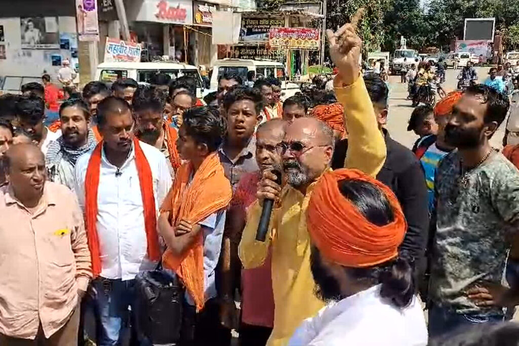 former mayor candidate abused Congress and BJP leaders: जगदलपुर। गणेश विसर्जन व ईद को लेकर जगदलपुर में 2 दिनों से बवाल मचा है, बीती रात गणेश विसर्जन करने जा रहे गणेश समितियों के साथ पुलिस की जम कर झूमा झटकी हुई। वहीं आज शहर के मेनरोड चौक में हिन्दू संगठनों ने प्रशासन व पुलिस के प्रति जम कर नाराजगी व्यक्त की।