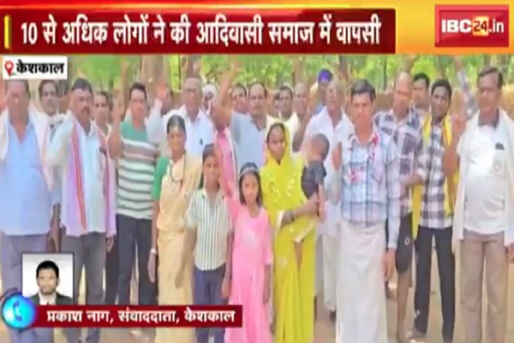 ,रायपुर: CG News: छत्तीसगढ़ सरकार धर्मांतरण को मुद्दे को लेकर सख्त हो गई है। साय सरकार लगातार ये बात कह रही है कि उनकी सरकार धर्मांतरण को लेकर कानून लाने जा रही है। इधर केंद्र सरकार भी अब जाति जनगणना का फैसला लिया है। ऐसे में धर्मांतरण करने वाले आदिवासियों ने एक डर का माहौल बन गया है और वे लोग अब अपने मूल धर्म में वापसी कर रहे हैं। इसी बीच अब कोंडागांव जिले में केशकाल विधानसभा के बडेराजपुर विकासखंड अंतर्गत ग्राम पिटीचुआ के 6 धर्मांतरित लोगों ने अपने मूलधर्म में वापसी की है। इनमें तीन बच्चे भी शामिल है। इसके साथ ही 7 अन्य लोग भी आदिवासी समाज में शामिल हुए थे।