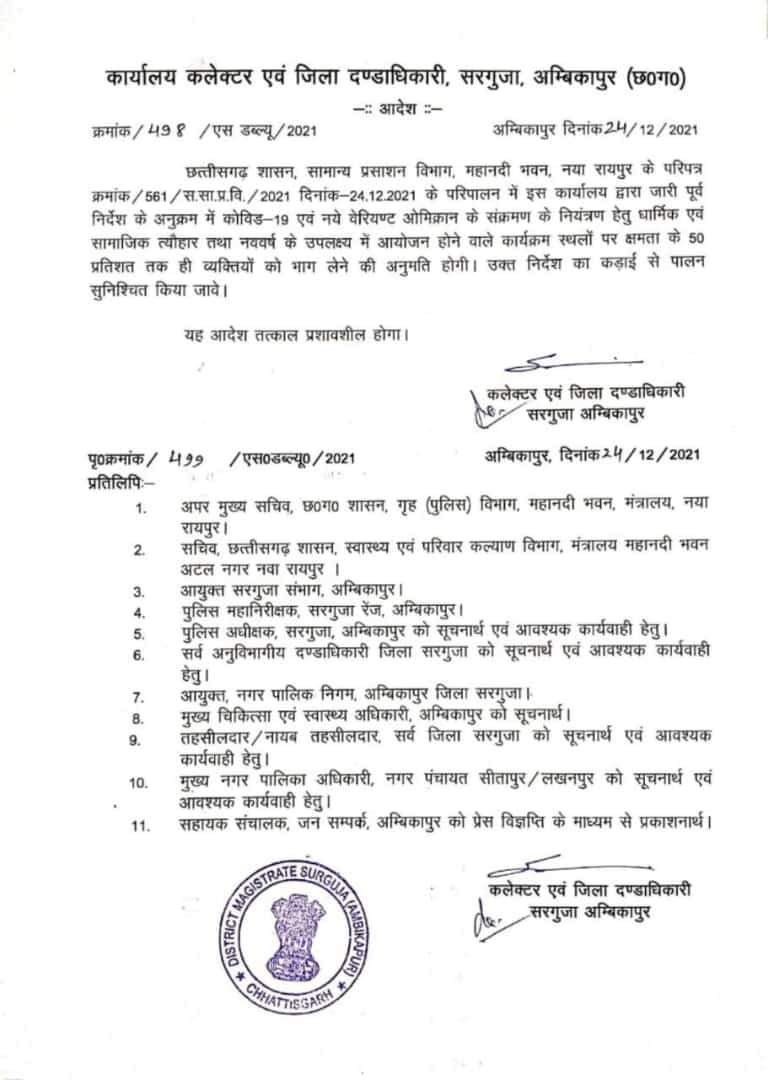 छत्तीसगढ़: नए साल की पार्टी में सिर्फ इतने लोग हो सकेंगे शामिल! Surguja District Administration Issued Guidelines for New Year Party