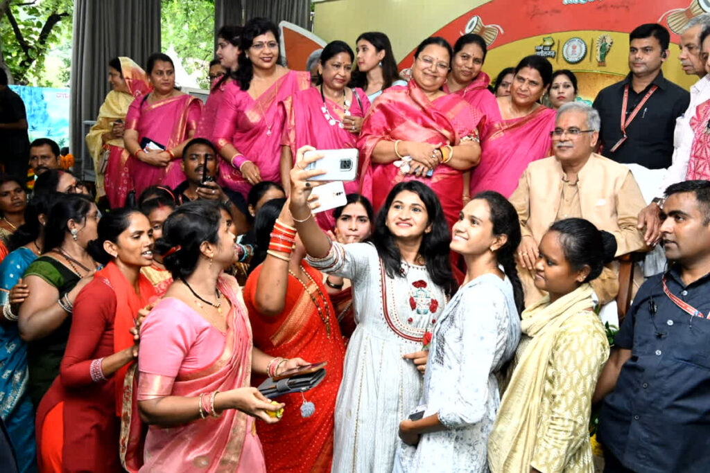छत्तीसगढ़ी लोक कलाकारों के दल ने छत्तीसगढ़ी गीत-संगीत से अनोखा समा बांधा। ‘तीजा पोरा के तिहार बहिनी नीक लागे मोर और गाड़ा गाड़ा जोहार…‘ जैसे गानों पर महिलाएं जमकर थिरकीं। मुख्यद्वार के पास रईचुली झूले की व्यवस्था थी, जिसका महिलाओं ने जमकर आनंद लिया। मुख्यमंत्री बघेल ने भी महिलाओं का उत्साह बढ़ाते हुए सपरिवार रईचुली झूले का आनंद लिया। मुख्यमंत्री संग सेल्फी लेने माताएं बहनें उत्साहित दिखी।