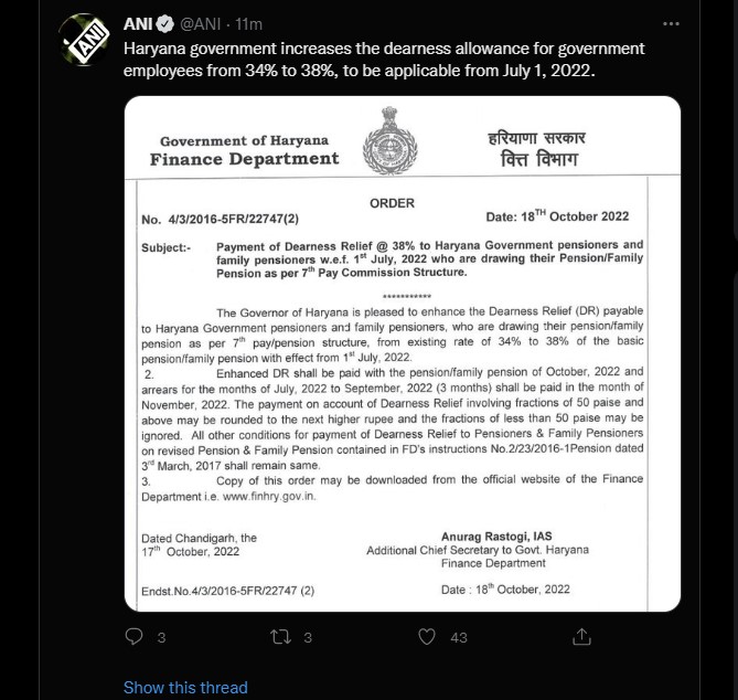 18 October Live Update: दिवाली पर राज्य सरकार ने कर्मचारियों को दिया बड़ा तोहफा, 34% से बढ़ाकर 38% कर दिया DA