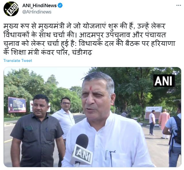 हरियाणा में आज विधायक दल की बैठक हुई। मुख्यमंत्री मनोहर लाल की अध्यक्षता में हुई इस बैठक में आदमपुर उपचुनाव को लेकर चर्चा की गई। विधायक दल की बैठक मुख्यमंत्री आवास पर हुई। बैठक में कैबिनेट मंत्री कंवरपाल गुर्जर, संदीप सिंह सहित सभी विधायक मौजूद रहे। हरियाणा सरकार ने 1 जुलाई 2022 से लागू होने वाले सरकारी कर्मचारियों के लिए महंगाई भत्ते को 34% से बढ़ाकर 38% कर दिया है।