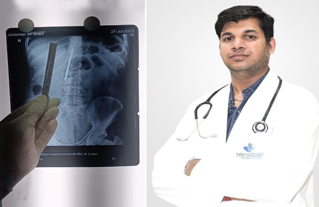 एक्सरे में 5×1 सेमी का फारेन बॉडी का पता चला, जिसके कारण लगातार रक्तस्राव हो रहा था और पेट दर्द की समस्या बनी हुई थी। भर्ती के बाद अगले दिन लैपरोटॉमी की गई। सीनियर लेप्रोस्कोपिक सर्जन डॉ. रितेश अग्रवाल के नेतृत्व में सर्जिकल टीम ने पेट के अंदर रक्तस्राव को सफलतापूर्वक इलाज कर महत्वपूर्ण अंगों को संरक्षित किया है। एनेस्थीसिया टीम डॉ. आराधना और डॉ. अभिमन्यु राणा के सहयोग से सर्जिकल प्रक्रिया से पेट की गुहा में लगभग 2.5 लीटर रक्त के महत्वपूर्ण संचय का पता चला, जिसका तुरंत इलाज किया गया।