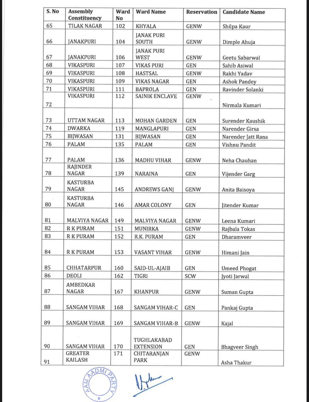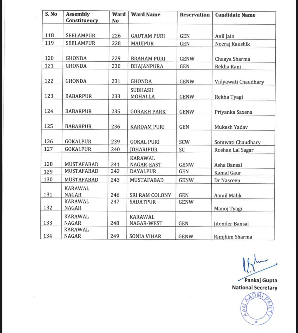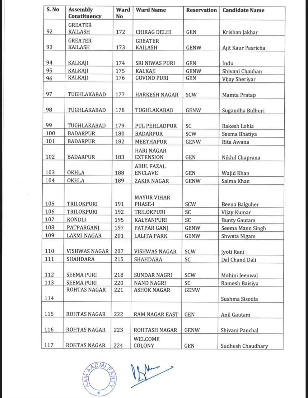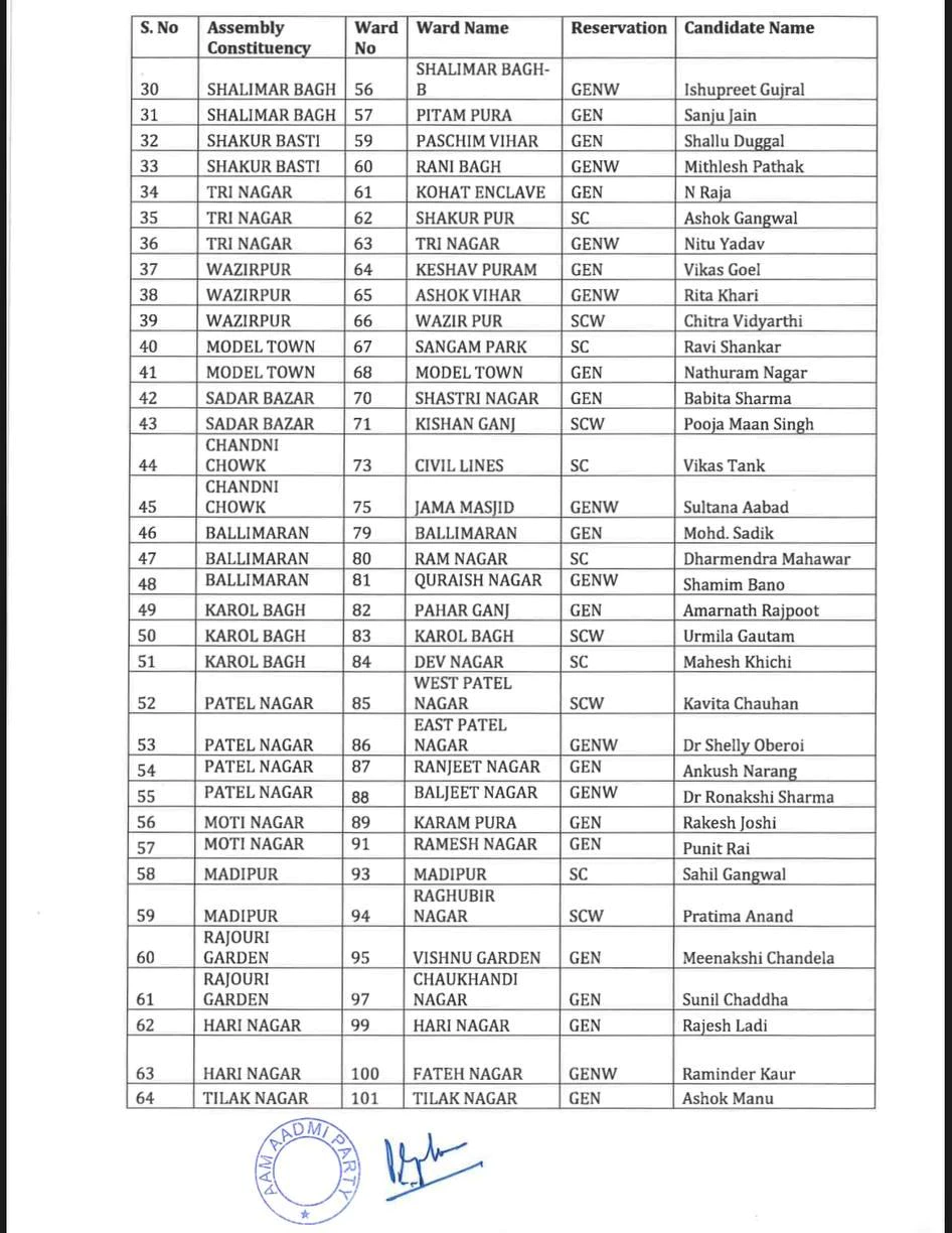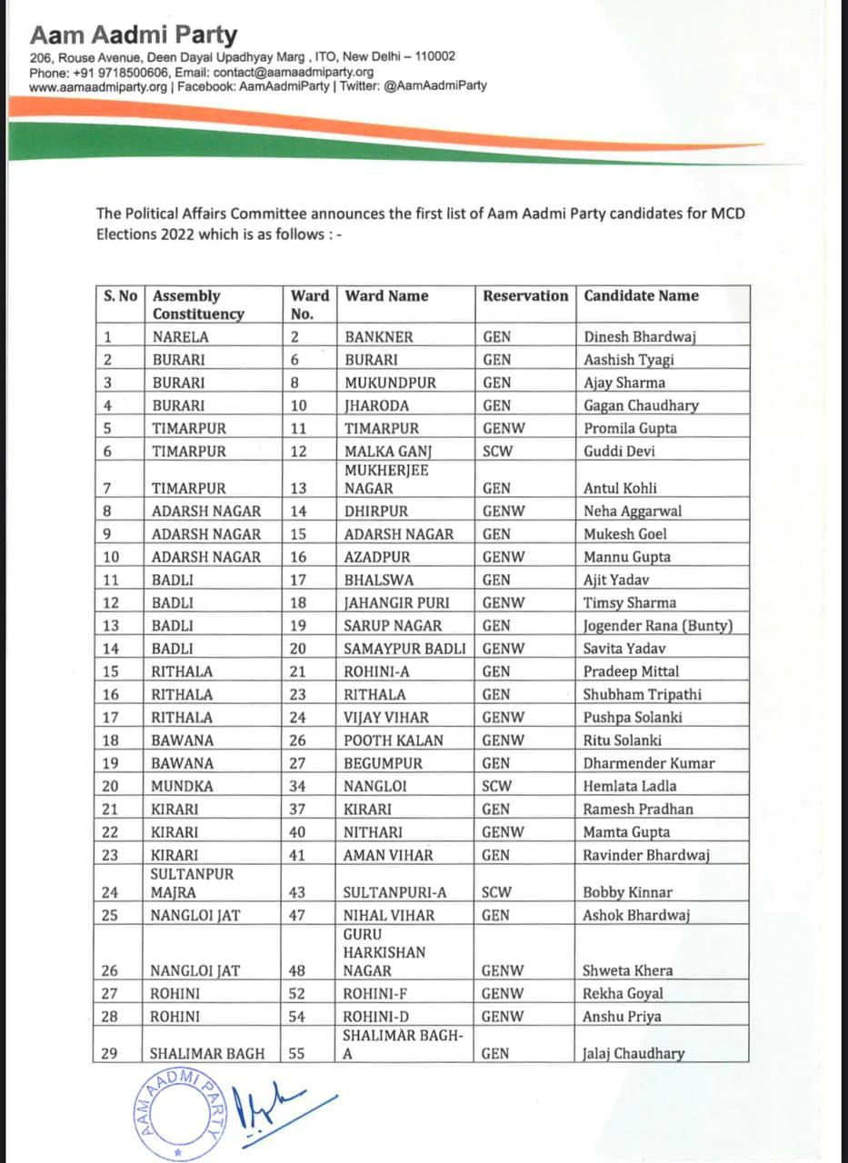 Delhi MCD Election 2022: ‘आप’ ने जारी की उम्मीदवारों की पहली लिस्ट, 134 सीटों के लिए नामों का ऐलान, यहां देखें पूरी सूची