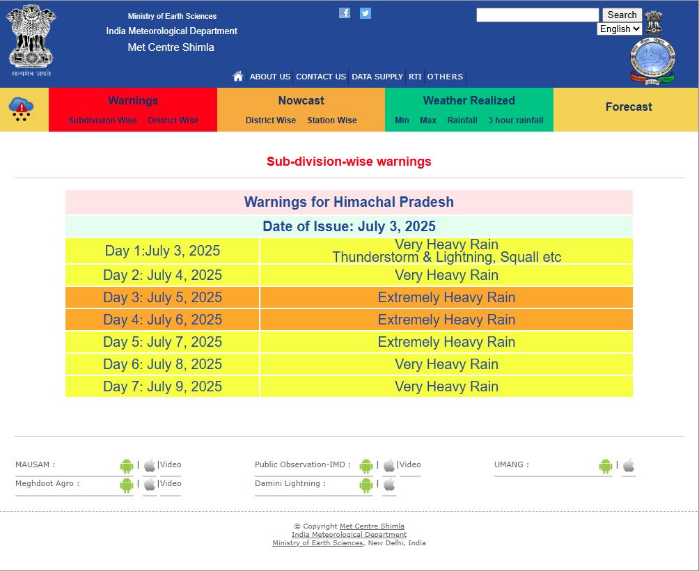 The India Meteorological Department (IMD) has issued a red alert in Himachal Pradesh pic.twitter.com/VIfegyDuPz