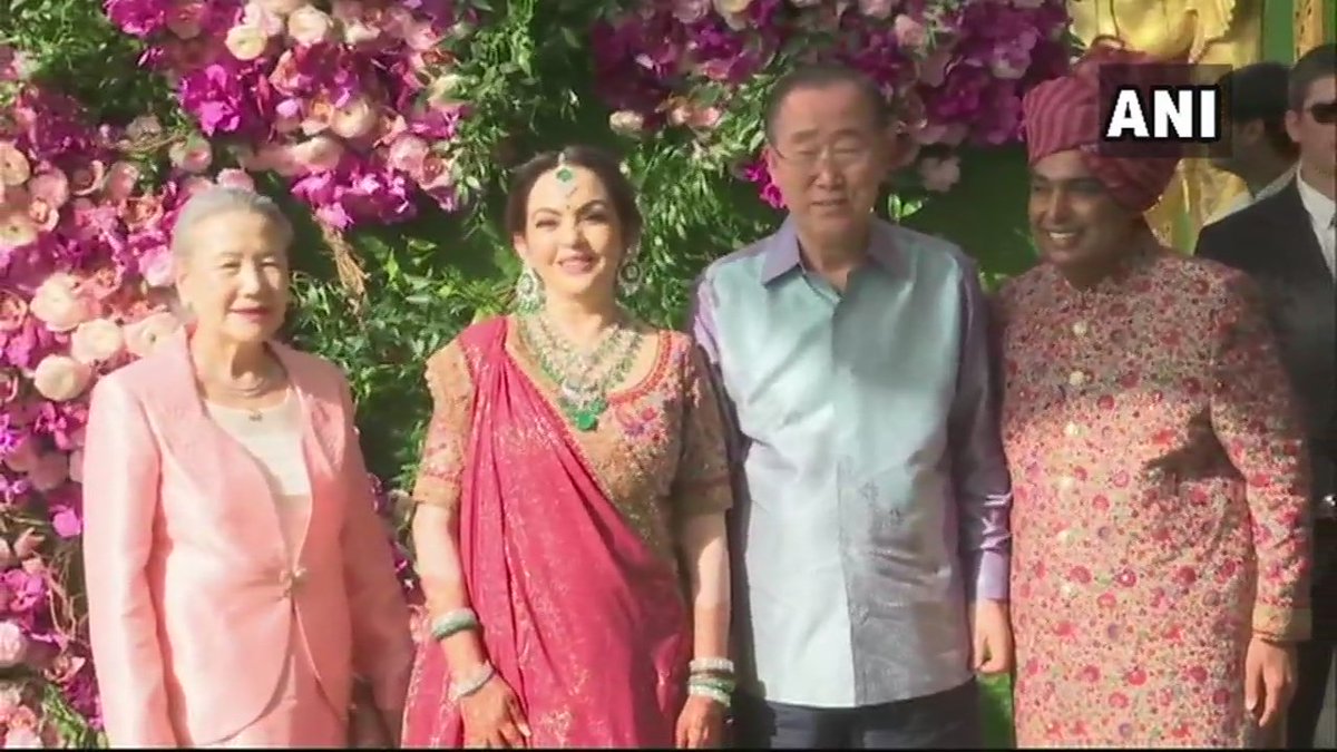 मुंबई: भारत के जाने माने बिजनेसमैन और सबसे अमीर आदमी मुकेश अंबानी के बेटे आकाश की शनिवार को मुंबई में शादी हो रही है। आकाश की शादी उद्योगपति रसेल मेहता की छोटी बेटी श्लोका मेहता से हो रही है। इस मौके पर अंबानी परिवार का घर दुल्हन की तरह सजाया गया है, सजावट में कोई कसर नहीं छोड़ी गई है। शादी की रस्में शुरु हो चुकी है। दोनों की शादी हिंदू रीति रिवाज से होगी। शादी में बधाई देने जहां बॉलीवुड के दिग्गज पहुंच रहे हैं वहीं, ब्रिटेन के पूर्व प्रधानमंत्री टोनी ब्लेयर अपनी पत्नी चेरी ब्लेयर के साथ शादी में शामिल हुए। आईए हम आपको इस शादी की कुछ तस्वीरें दिखाते हैं…