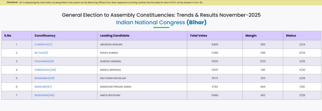 Bihar Vidhan Sabha Result 2025: कांग्रेस को मिल रही मात्र इतनी सीटें, पार्टी के सिर्फ ये उम्मीदवार आगे, आंकड़े देख हैरान रह जाएंगे राहुल गांधी