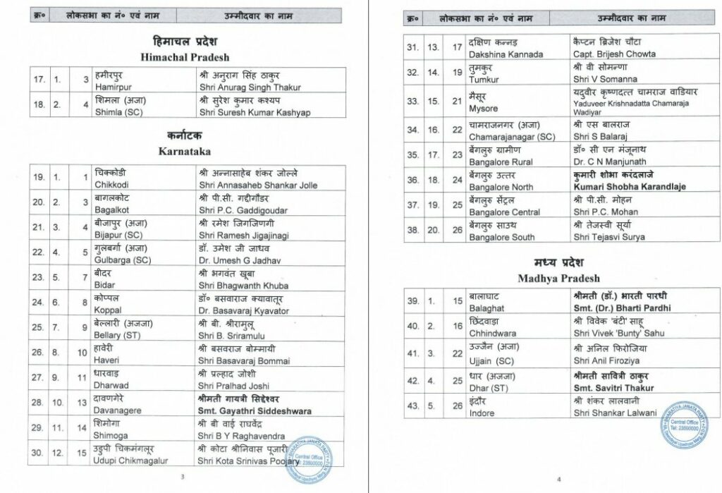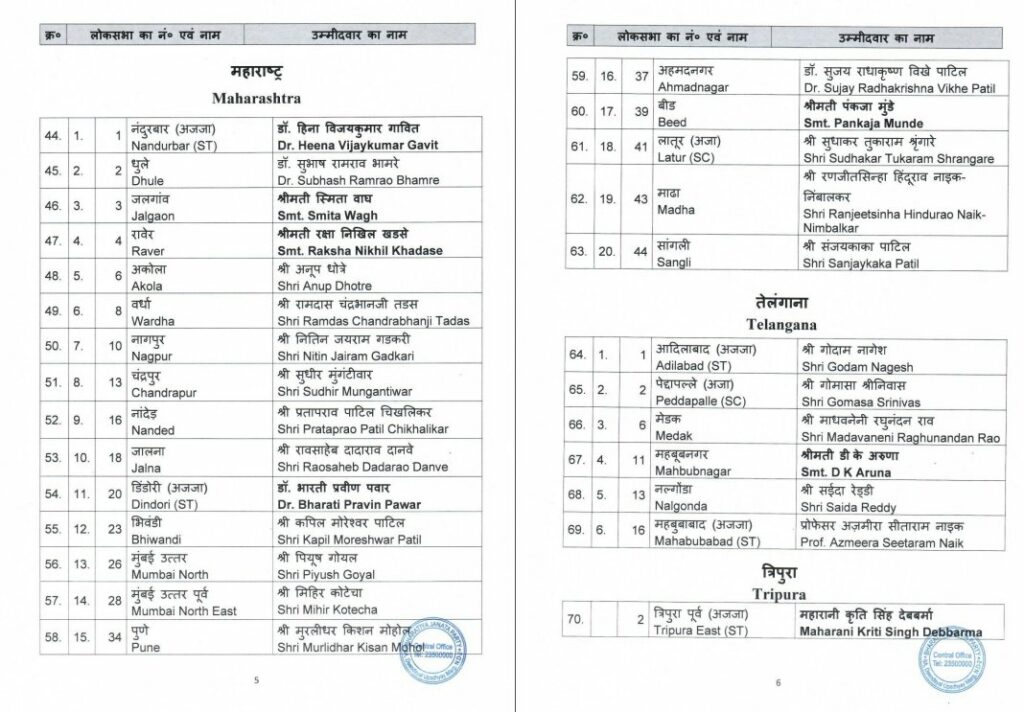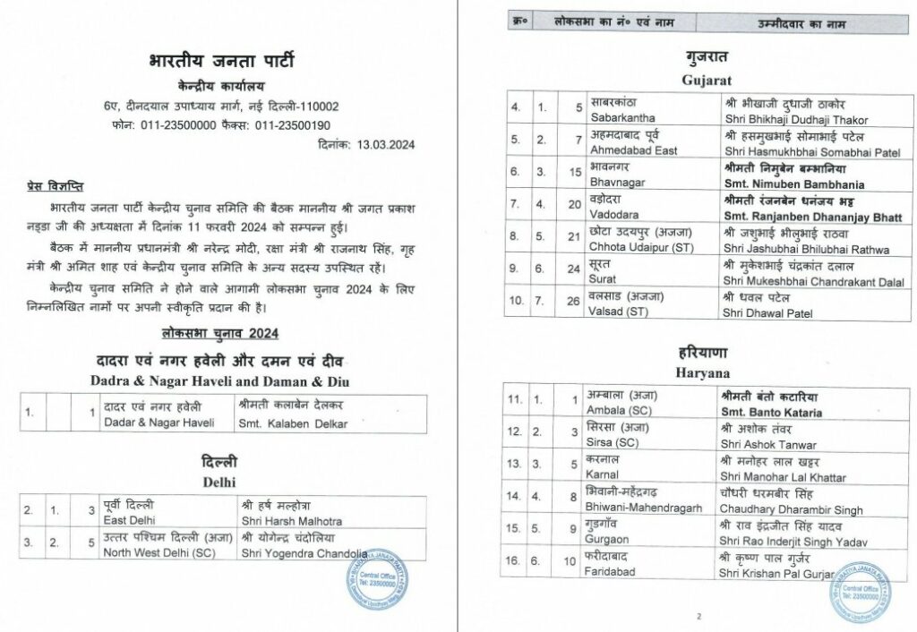 BJP candidate list 2024