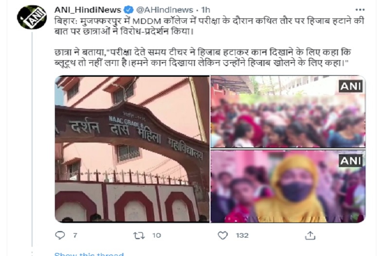 Hijab removed Case : बिहार के मुजफ्फरपुर जिला स्थित MDDM कॉलेज में परीक्षा के दौरान कथिततौर पर हिजाब हटाने को लेकर ...