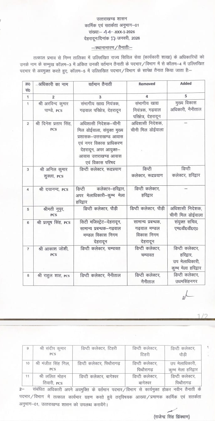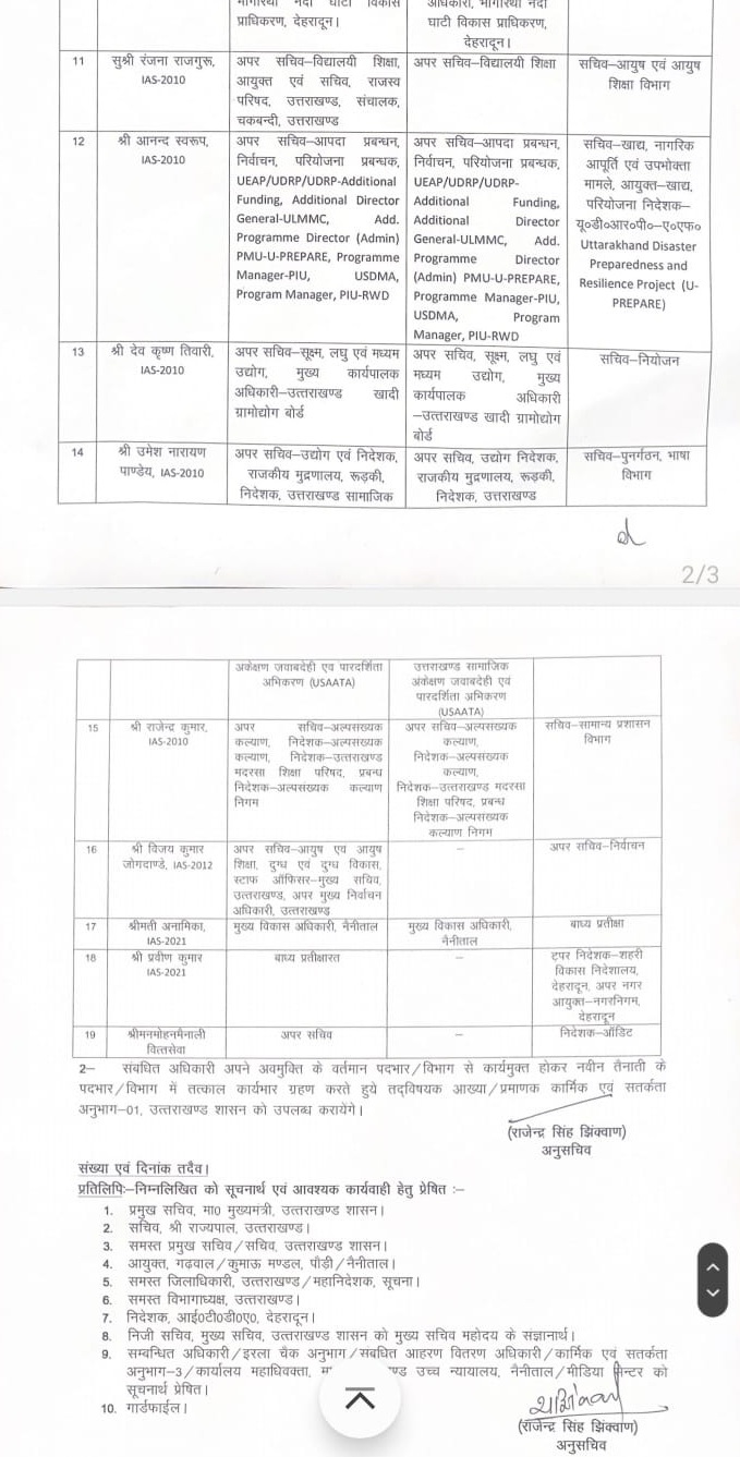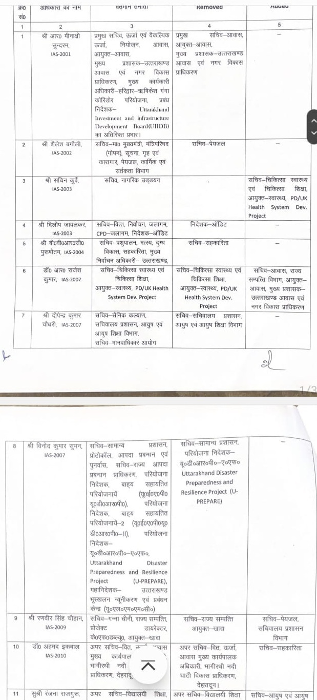 • उत्तराखंड शासन में 18 आईएएस और 11 पीसीएस अधिकारियों के तबादले