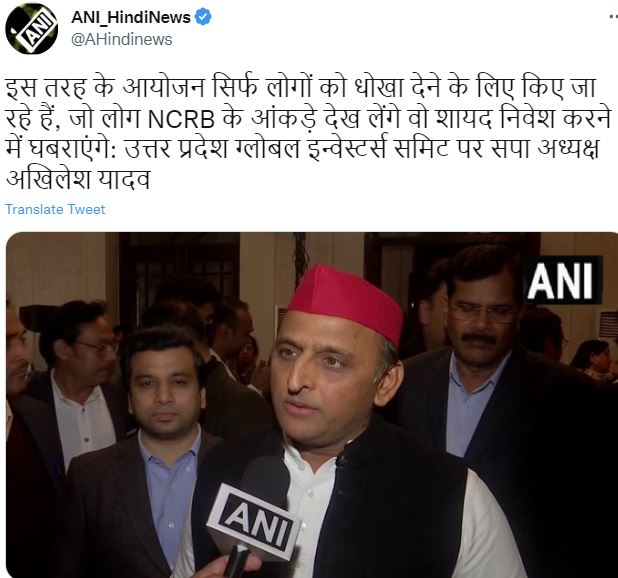 इस तरह के आयोजन सिर्फ लोगों को धोखा देने के लिए किए जा रहे हैं, जो लोग NCRB के आंकड़े देख लेंगे वो शायद निवेश करने में घबराएंगे: उत्तर प्रदेश ग्लोबल इन्वेस्टर्स समिट पर सपा अध्यक्ष अखिलेश यादव