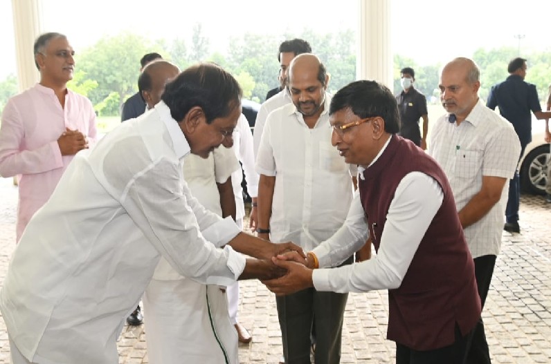 पार्टी को राष्ट्रीय स्तर पर लांच करने के अवशर पर सीएम केसीआर , कर्नाटका के जनता दल के नेता और विपक्ष के नेता एच.डी. कुमारस्वामी के साथ, पार्टी के विधायक और जनप्रतिनिधियों का एक समूह मौजूद रहा। तमिलनाडु से ‘विदुथलाई चिरुथैगल काची’ (वीसीके) पार्टी के नेता, चिदंबरम से सांसद और दलित नेता थिरुमावलवन, प्रतिनिधियों के एक समूह के साथ बुधवार सुबह प्रगति भवन वार्ता पर पहुंचे थे। मुख्यमंत्री केसीआर, टीआरएस के कार्यकारी अध्यक्ष श्री के टी रामाराव ने प्रगति भवन में कुमारस्वामी की टीम और थिरुमावलवन की टीम को सादर आमंत्रित किया। उसके बाद, उन्होंने आए सभी मेहमानों के साथ नाश्ता किया । इस अवसर पर मंत्री हरीश राव, प्रशांत रेड्डी, सांसद संतोष कुमार, टीआरएस विधायक, एमएलसी और अन्य जन-प्रतिनिधि मौजूद थे।