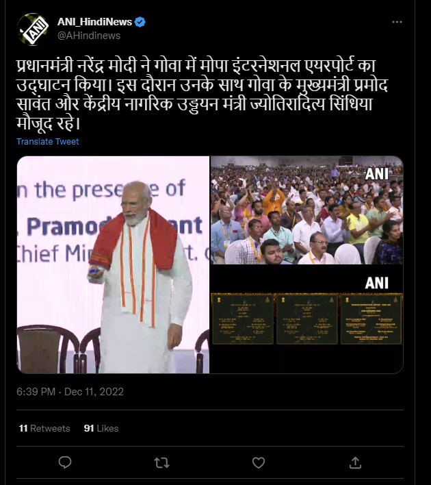 India news today in hindi 11 December: पीएम मोदी ने गोवा को दी बड़ी सौगात, मोपा में किया इंटरनेशनल एयरपोर्ट का उद्घाटन