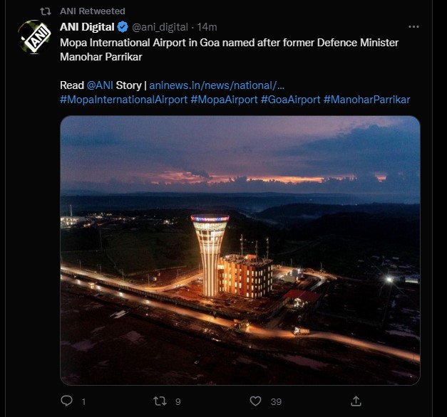 प्रधानमंत्री नरेंद्र मोदी ने गोवा में मोपा इंटरनेशनल एयरपोर्ट का उद्घाटन किया। इस दौरान उनके साथ गोवा के मुख्यमंत्री प्रमोद सावंत और केंद्रीय नागरिक उड्डयन मंत्री ज्योतिरादित्य सिंधिया मौजूद रहे। pic.twitter.com/7HisQluRuN