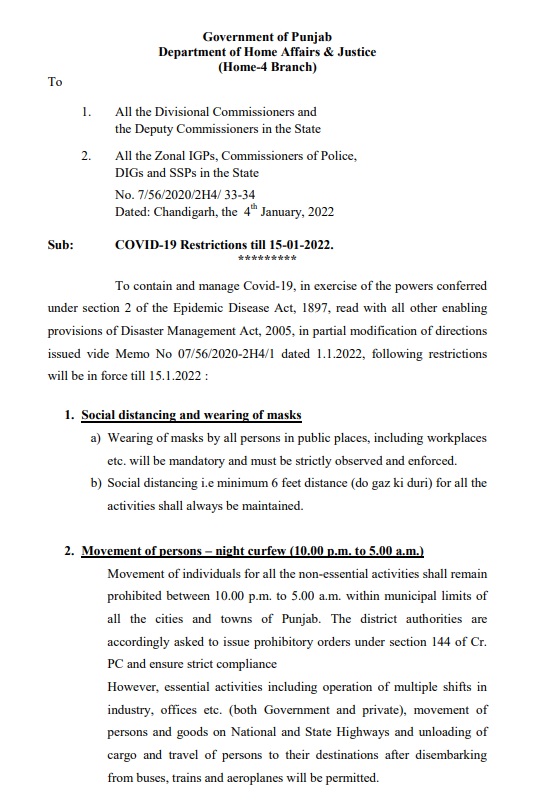 #Omicron: Punjab Govt imposes night curfew in municipal areas with certain exceptions