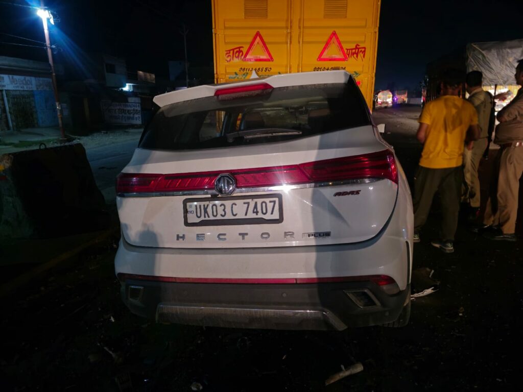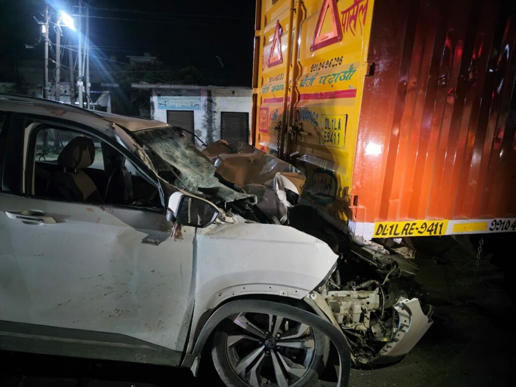 हाइवे पर खड़े ट्रक में लगी पवनदीप की कार