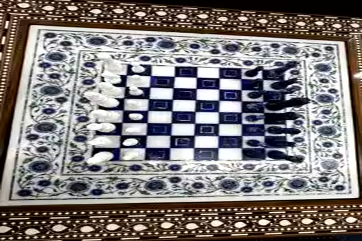 संगमरमर शतरंज सेट: आगरा की शिल्प परंपरा और ODOP विरासत को समेटे यह मार्बल चेस सेट बारीकी से जड़े गए पत्थरों, फूलदार बॉर्डर और विपरीत रंगों के मोहरों के साथ कला और उपयोगिता—दोनों का अद्भुत मिश्रण है। यह केवल खेल नहीं, बल्कि उत्तर भारतीय इनले वर्क का संग्रहणीय नमूना भी है।