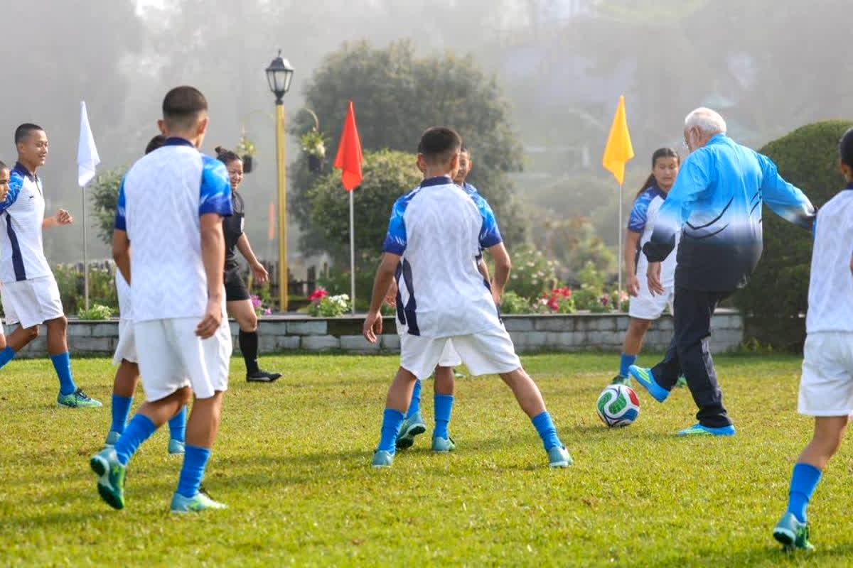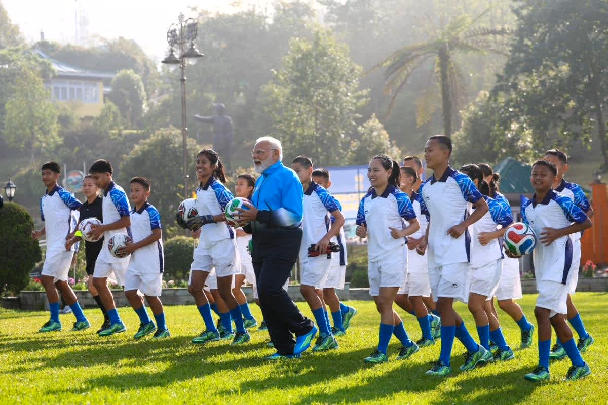 - इस क्रम में उन्होंने गंगटोक में मंगलवार सुबह-सुबह बच्चों के एक ग्रुप के साथ फुटबॉल खेला