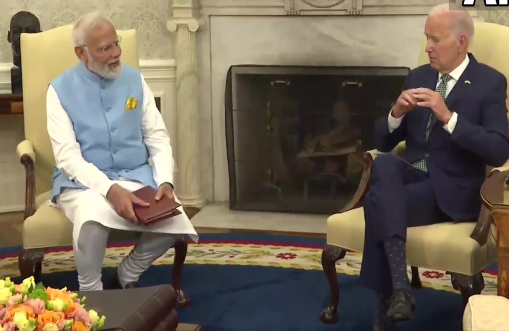 PM Modi US Visit : प्रधानमंत्री नरेंद्र मोदी और अमेरिकी राष्ट्रपति जो बाइडन के बीच व्हाइट हाउस में द्विपक्षीय बैठक शुरू हुई। यहां दोनों नेता भारत और अमेरिका संबंधों, क्षेत्रीय तथा वैश्विक मुद्दों पर चर्चा करेंगे। पीएम मोदी ने अमेरिकी राष्ट्रपति से बातचीत करते हुए कहा जब कभी दो देशों के बीच बात की जाती है तो अकसर औपचारिक सांझा ब्यान, काम करने वाला समहू और आमतौर पर उसी दायरे पर बात होती है।