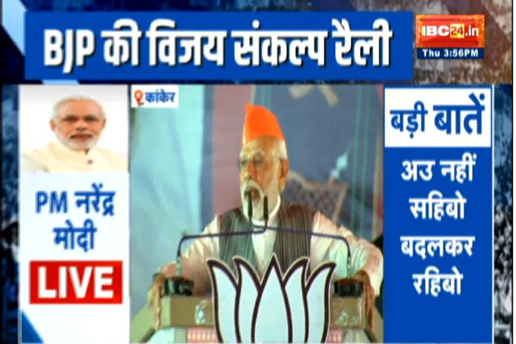 रायपुर। PM Modi Speech in Bastar छत्तीसगढ़ में विधानसभा चुनाव को अब 5 दिन बचे हुए है। ऐसे में लगातार केंद्रीय मंत्रियों का प्रदेश दौरा जारी है। इसी कड़ी में आज पीएम मोदी छत्तीसगढ़ दौरे पर है। वे आज बस्तर में जनसभा को संबोधित कर रहे हैं। इस दौरान पीएम मोदी ने कहा कि बस्तर की जनता कह रही है अऊ नई साहिबो बदल के रहीबो।