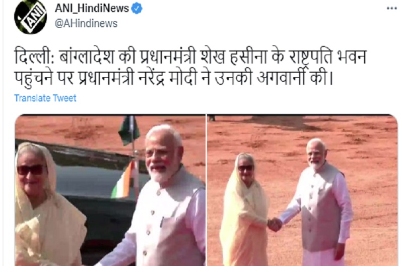 नई दिल्ली : बांग्लादेश की प्रधानमंत्री शेख हसीना मंगलवार सुबह भारत की राष्ट्रपति द्रौपदी मुर्मू से भेंट करने के लिए राष्ट्रपति भवन पहुंची। यहां उनका भव्य स्वागत हुआ। बांग्लादेशी पीएम के स्वागत के लिए खुद प्रधानमंत्री नरेंद्र मोदी मौजूद रहे। राष्ट्रपति भवन में मुलाक़ात के बाद पीएम मोदी और शेख हसीना हैदराबाद हाउस पहुंच चुके है। यहां दोनों देश के पीएम के बीच होने वाली बैठक में कई अहम मुद्दों पर चर्चा होने की संभावना है।