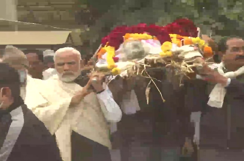 प्रधानमंत्री नरेंद्र मोदी गांधीनगर स्थित अपने भाई पंकज मोदी के घर पहुंचे चुके हैं, जहां उनकी मां रहती थी। अब से कुछ ही देर में हीराबेन मोदी का अंतिम संस्कार किया जाएगा। पीएम मोदी भी इसमें शामिल होंगे। हीराबेन के पार्थिव शरीर को शव वाहिनी से गांधीनगर के सेक्टर 30 स्थित श्मशान भूमि ले जाया जा रहा है। पीएम मोदी अपनी मां हीराबेन को अंतिम यात्रा पर ले जा रहे हैं। उन्होंने मां के पार्थिव शरीर को कंधा दिया है।