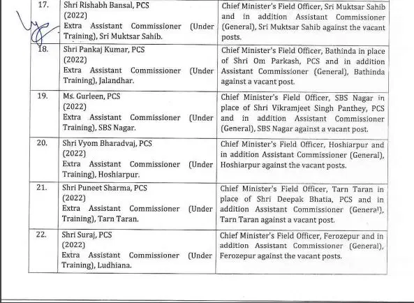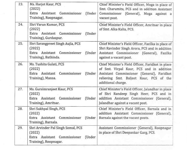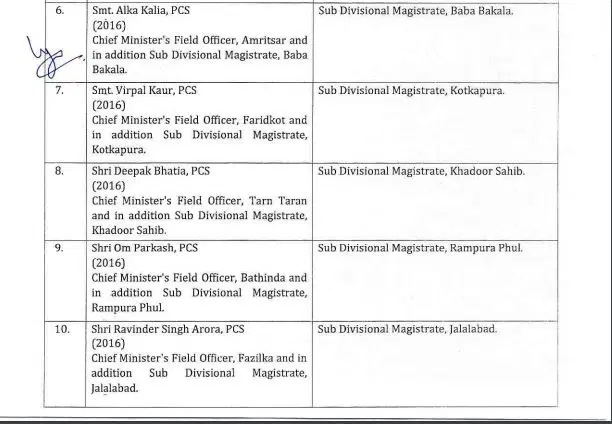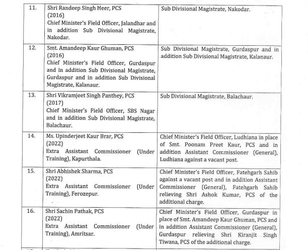 – जबकि रविंद्र सिंह अरोड़ा को जलालाबाद का एसडीएम नियुक्त किया गया है।