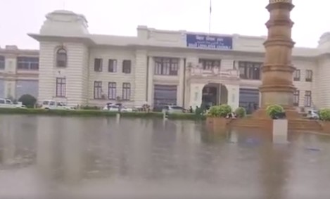 #WATCH बिहार: भारी बारिश के बाद पटना में बिहार विधानसभा के परिसर में जलभराव हुआ। pic.twitter.com/uAPIKiYah5