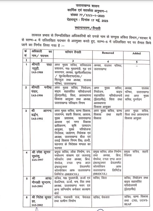 देर रात दो दर्जन से अधिक प्रशासनिक अफसरों के तबादले, बदले गए इन जिलों के कलेक्टर! uttarakhand ias transfer list 2023 today