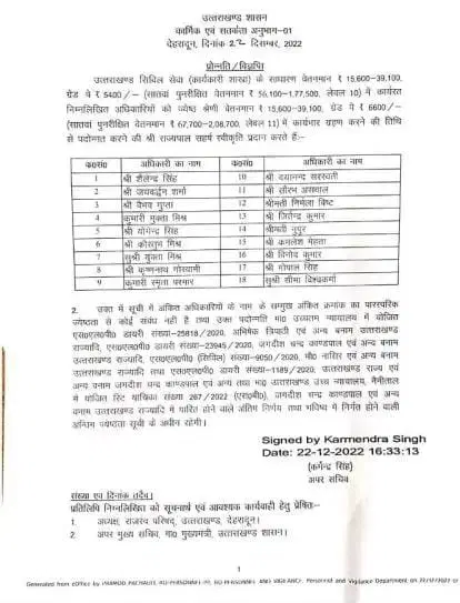 Uttarakhand PCS Promotion 2022 Latest News 18 पीसीएस अधिकारियों को प्रमोशन, मिलेगा ज्येष्ठा वेतनमान का लाभ, आदेश जारी, यहां देखें नवीन सूची