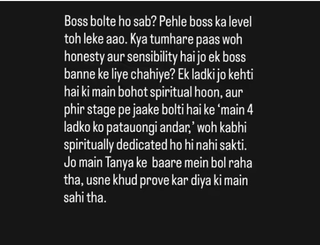 बलराज ने आगे कहा कि एक लड़की जो खुद को आध्यात्मिक बताती है और फिर मंच पर कहती है कि वह शो में चार लड़के पटाएगी, वह कभी सच्चे मायनों में आध्यात्मिक नहीं हो सकती। उनके मुताबिक, तान्या ने खुद ही साबित कर दिया कि उनके आरोप सही थे।