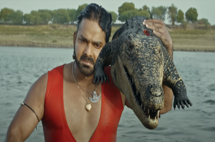 Pawan Singh Har Har Gange movie teaser release: इस टीजर में पवन सिंह अपने कंधे पर मगरमच्छ को उठाये हुए नजर आ रहे हैं।