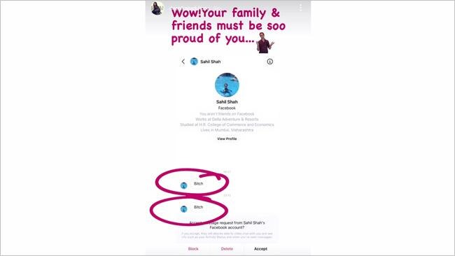 मिली जानकारी के अनुसार साहिल शाह नाम के यूजर ने दीपिका पादुकोण को सोशल मीडिया पर मैसेज कर गाली दी है। इसके बाद दीपिका ने उस साहिल को सबक सिखाने का फैसला लिया और यूजर के मैसेजेज का स्क्रीनशॉट लेकर तस्वीर को स्टेटस पर लगा दिया। साथ ही यह भी लिखा कि वाओ…तुम्हारे परिवार और दोस्तों को तुम पर बहुत फक्र होगा। बताया जा रहा है कि गाली देने वाला शख्स मुंबई का ही है।