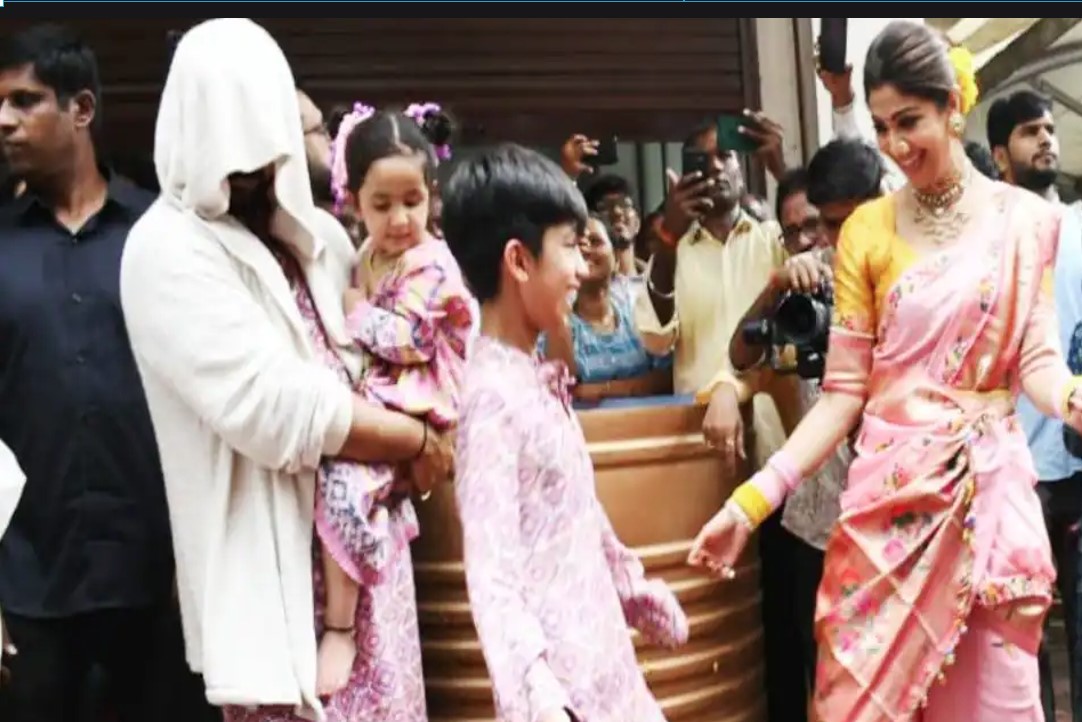 इस दौरान शिल्पा लाइट पिंक कलर की पारंपरिक मराठी साड़ी और येलो ब्लाउज पहने नजर आईं।वहीं शिल्मा के पति राज कुंद्रा हमेशा की तरह अजीब सा मास्क पहनें नजर आए। आपको बता दें कि राज कुंद्रा का नाम जब से पोर्नोग्राफी मामले में सामने आया है उसके बाद से उनका मास्क लगाने का सिलसिला जारी है। वो अक्सर ऐसे ही मास्क लगाए हुए दिखते हैं फिलहाल वो अपने मास्क के चलते ही बुरी तरह से ट्रोल हो रहे हैं।
