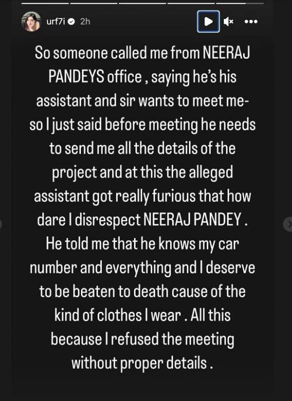 urfi javed controversy: वीडियो में उर्फी जावेद बता रही हैं कि उन्हें डायरेक्टर नीरज पांडे के ऑफिस से कॉल आई थी। शख्स ने उन्हें प्रोजेक्ट के बारे में बात करने के लिए अपने ऑफिस बुलाया था।