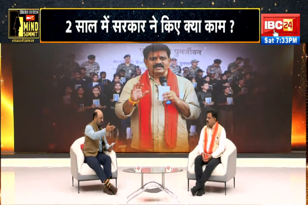 IBC24 Mind Summit: रायपुर। छत्तीसगढ़ में विष्णुदेव साय सरकार के दो साल पूरे होने के मौके पर आज मध्य भारत का सबसे बड़ा और विश्वसनीय न्यूज चैनल आईबीसी 24 छत्तीसगढ़ सरकार को ‘माइंड समिट’ के तौर पर मंच प्रदान कर रहा है। इस समिट में हम छत्तीसगढ़ सरकार के मंत्रियों से जहां उनके दो साल के अनुभव पर चर्चा कर रहे हैं, तो वहीं आने वाले तीन सालों के लिए विकास और जनकल्याण के रोडमैप को भी जानने की कोशिश कर रहे हैं।