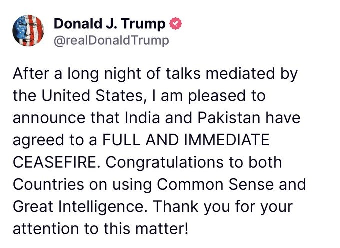 Ceasefire announced between India and Pakistan! Donald Trump said this by tweeting