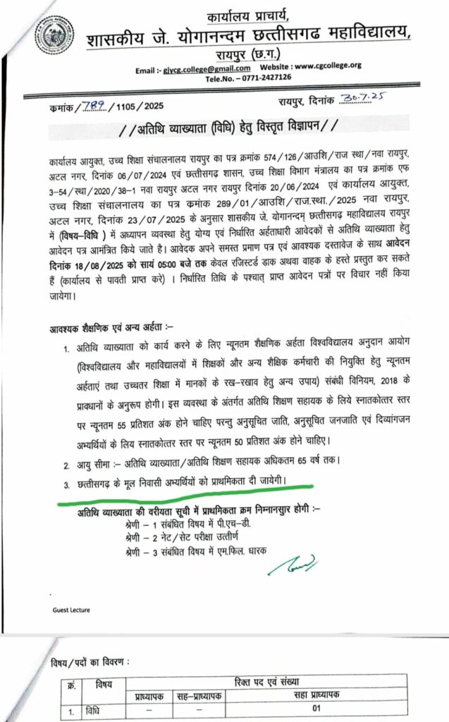 CG GUEST LECTURER CONTROVERSY: प्रदेश के युवा अभ्यर्थियों में गहरी नाराज़गी है। उच्च शिक्षा आयुक्त के द्वारा जारी इस आदेश के अनुसार अब केवल समान अंक होने की स्थिति में ही स्थानीय (छत्तीसगढ़ के) उम्मीदवारों को प्राथमिकता दी जाएगी।