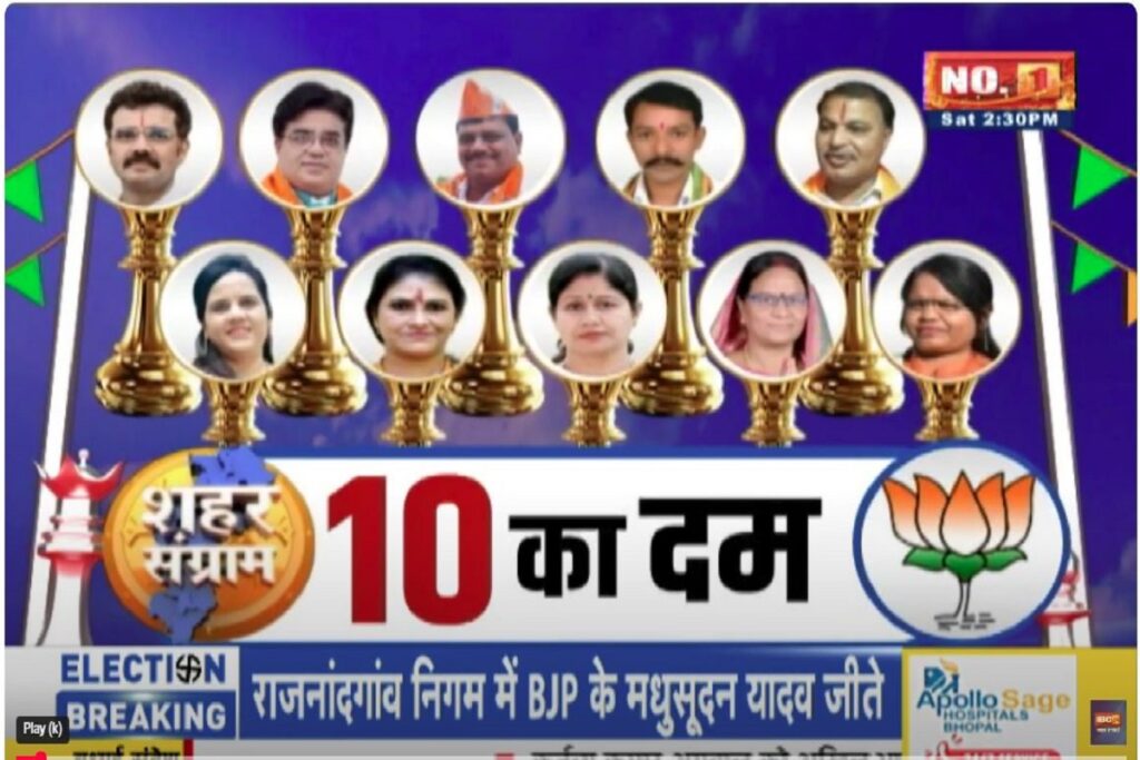 नगर निगम रायपुर, रायगढ़, चिरमिरी, राजनांदगांव, अंबिकापुर, धमतरी, बिलासपुर, कोरबा, दुर्ग और जगदलपुर के महापौर के नतीजे सामने आ चुके हैं, जिसमें बीजेपी जीत दर्ज कर चुकी है।