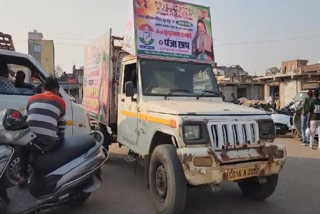 ,सूरजपुर: CG congress candidate viral video: नगरीय निकाय चुनाव की सरगर्मियों के बीच सूरजपुर में प्रचार का एक दिलचस्प मामला सामने आया है। जहां कांग्रेस के नगर पालिका अध्यक्ष पद की उम्मीदवार के प्रचार वाहन के जरिए भाजपा के महतारी वंदन योजना और खाद्यान्न योजना जैसी कई सरकारी योजनाओं का नाम लेकर वोट मांगा जा रहा है।
