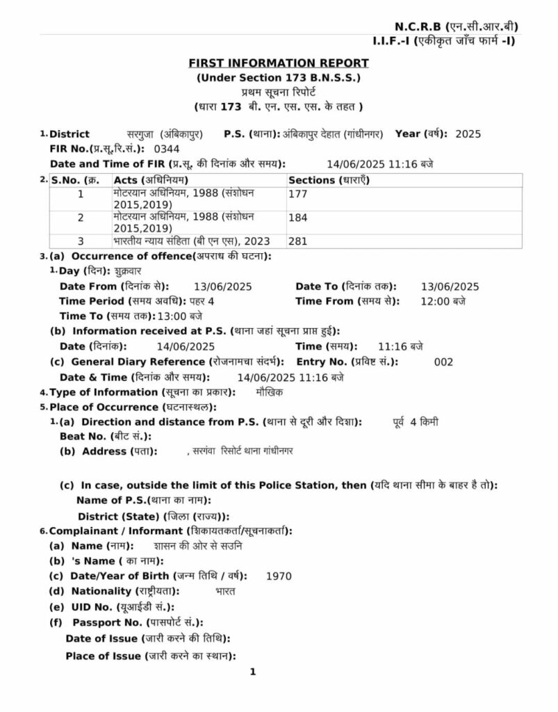 Ambikapur News, इस मामले पर कांग्रेस ने भी सरकार और पुलिस व्यवस्था पर सवाल खड़ा किया था। जिसके बाद पुलिस ने अपनी किरकिरी होता देख मामले में अपराध दर्ज किया है। जिसके तहत गांधीनगर पुलिस ने इस मामले में अज्ञात वाहन चालक के खिलाफ अपराध दर्ज किया है।