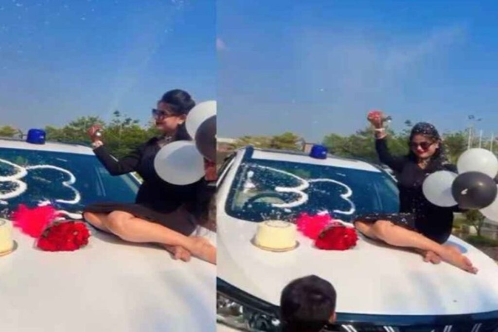 दरअसल मीडिया में वीडियो वायरल होने के बाद इस पर एक्शन लिया है। जिसमें बताया गया था कि बलरामपुर बटालियन में पदस्थ तश्लिम आरिफ की पत्नी फरहीन ने अपना जन्मदिन अनूठे अंदाज में मनाया था। जिसमे मेम साहब ने अपने पति के ओहदे का भी ख्याल नहीं रखा था। मैडम कार के बोनट में बैठकर केक काटते नजर आ रही थी। यही नहीं सब रूफ के अलावा कार के गेट खोलकर नियमों को ताक पर रखकर गाड़ी चलाई गई थी।