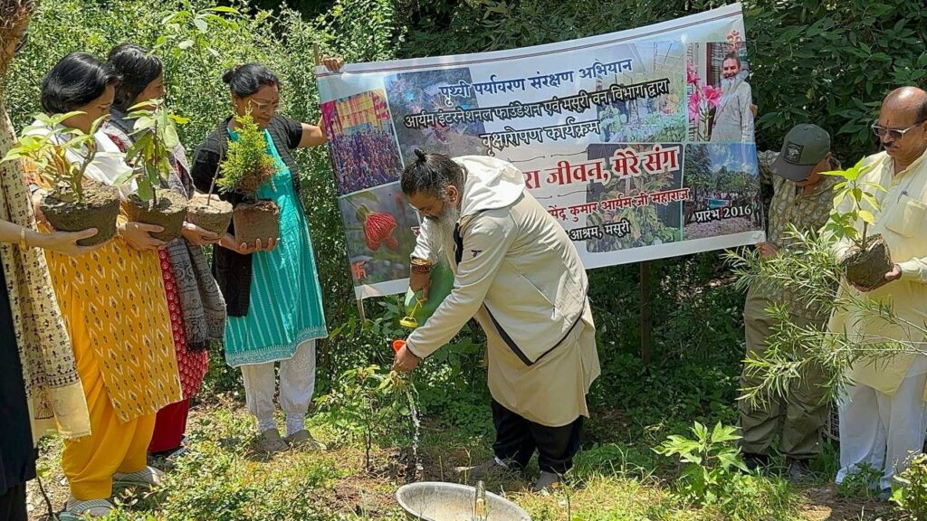 Environment day special,   मसूरी(देहरादून): देवभूमि उत्तराखण्ड में अवस्थित आर्यम इंटरनेशनल फ़ाउंडेशन के तत्त्वावधान में संचालित भगवान शंकर आश्रम द्वारा आनंद वाटिका प्रकल्प के अंतर्गत हस्त अहोरात्र नक्षत्र की दशमी तिथि गंगा दशहरा, विश्व पर्यावरण दिवस के शुभ अवसर पर ‘मेरा पौधा, मेरा जीवन, मेरे संग’ अभियान प्रारंभ हुआ । आर्यम समुदाय ने इस वर्ष देश भर में 51 हज़ार वृक्ष लगाने का लक्ष्य निर्धारित किया है । आर्यम महाराज को उनके पर्यावरण और प्रकृति प्रेम को देखते हुए ग्रीन गुरु के रूप में जाना जाता है ।