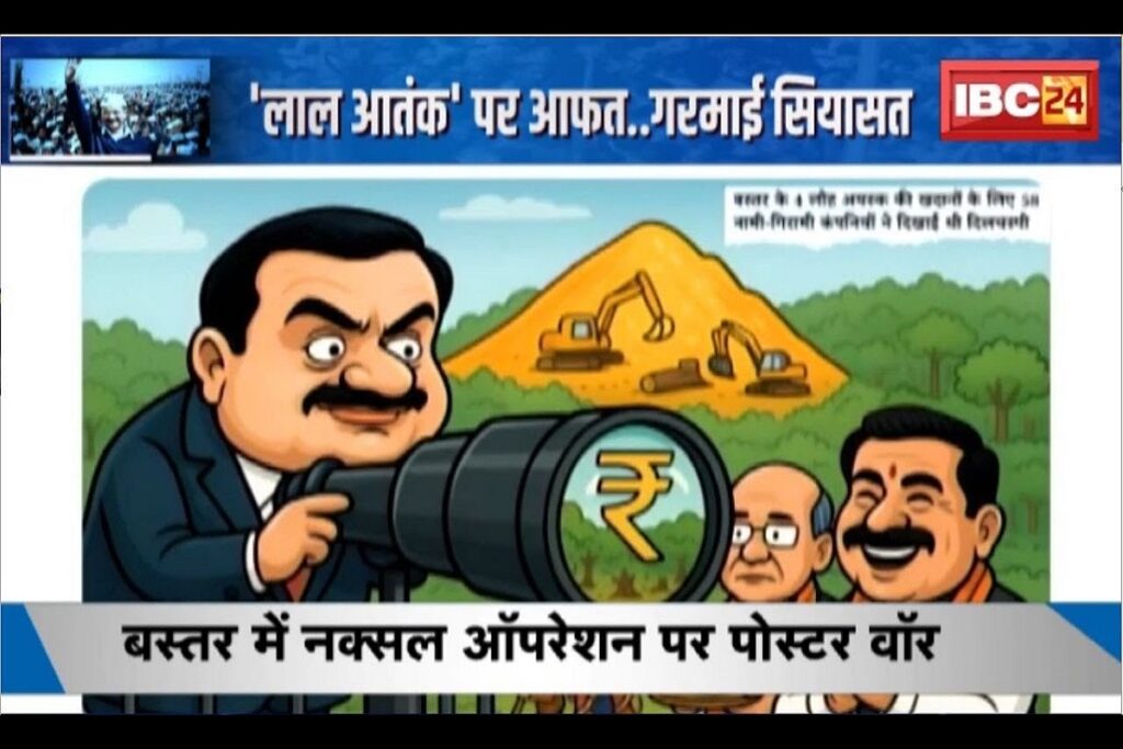 छत्तीसगढ़ में नक्सलियों के खिलाफ निर्णायक लड़ाई जैसे-जैसे अंतिम पड़ाव की ओर पहुंच रही है… नक्सल ऑपरेशन पर सियासत भी तेज होती जा रही है… जिसकी ताजा मिसाल है… छत्तीसगढ़ कांग्रेस की ओर से X पर जारी किया गया ये कार्टून पोस्टर.. जिसमें गौतम अडाणी और प्रदेश के दोनों डिप्टी सीएम को दिखाया गया है… अडानी दूरबीन लिए खड़े दिखाई दे रहे है वही उनके सामने दोनों उपमुख्यमंत्री हाथ जोड़कर खड़े हैं..