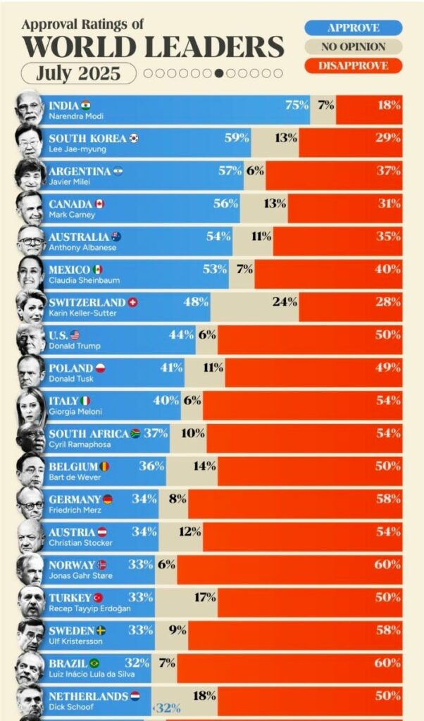 “Morning Consult Global Leader Approval Rating Tracker” के अनुसार, यशस्वी प्रधानमंत्री श्री नरेंद्र मोदी जी विश्व के सबसे लोकप्रिय नेतृत्वकर्ता, प्रेरणादायक और अटूट विश्वास के प्रतीक के रूप में अजेय शिखर पर विराजमान हैं।