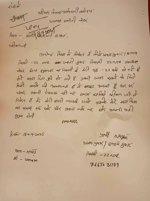 हनुमानगढ़: Rajasthan News: राजस्थान के हनुमानगढ़ जिले से एक अनोखा और भावनात्मक मामला सामने आया है जिसने सोशल मीडिया पर लोगों का ध्यान आकर्षित किया है। जिले के नोहर उपखंड के एनटीआर गांव के रहने वाले 33 वर्षीय श्रवण सुथार नामक युवक ने पंचायत समिति के विकास अधिकारी और नायब तहसीलदार को एक लिखित ज्ञापन सौंपते हुए अपनी शादी करवाने की मांग की है।