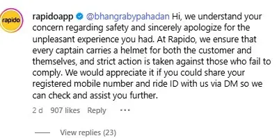 यह पोस्ट सोशल मीडिया पर वायरल हो गई और लाखों लोगों ने इसे देखा। यूज़र्स ने रैपिडो और ड्राइवर दोनों की जमकर आलोचना की। इसके जवाब में रैपिडो ने प्रतिक्रिया दी, “हम आपकी सुरक्षा से जुड़ी चिंताओं को गंभीरता से लेते हैं और खेद प्रकट करते हैं। कृपया राइड डिटेल्स साझा करें ताकि हम कार्रवाई कर सकें।”