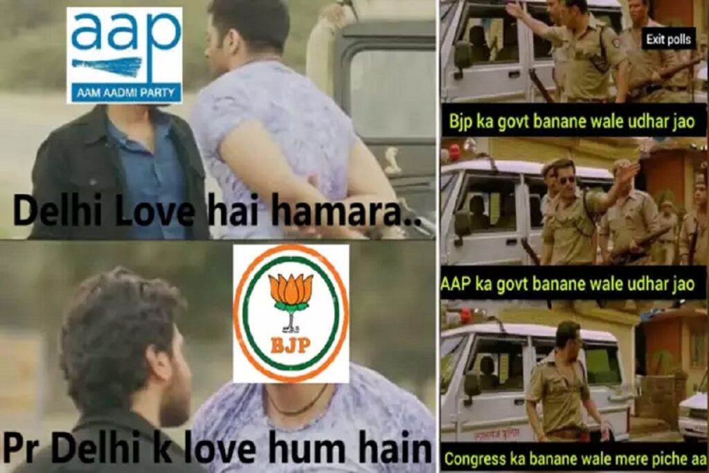 नई दिल्लीः Delhi Election Memes दिल्ली विधानसभा चुनाव के रुझानों में भाजपा 27 साल बाद सत्ता में वापसी करती दिख रही है। 70 सीटों में से भाजपा 45 और आम आदमी पार्टी (AAP) 25 सीटों पर आगे चल रही है। AAP संयोजक केजरीवाल नई दिल्ली सीट पर 8वें राउंड के बाद 238 वोट से पीछे चल रहे हैं। दिल्ली दंगों वाली सीट मुस्तफाबाद सीट पर भाजपा के मोहन बिष्ट 40 हजार वोटों से आगे हैं। यहां दिल्ली दंगों के आरोपी ताहिर हुसैन चौथे नंबर पर हैं। इसी के साथ ही सोशल मीडिया पर अब मीम्स की बाढ़ आ गई है।